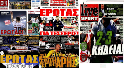 Τέσσερις από τις επτά αθλητικές εφημερίδες της Αθήνας συνέπεσαν την Παρασκευή, ανήμερα του «Αγίου Βαλεντίνου», στον πρωτοσέλιδο τίτλο τους.